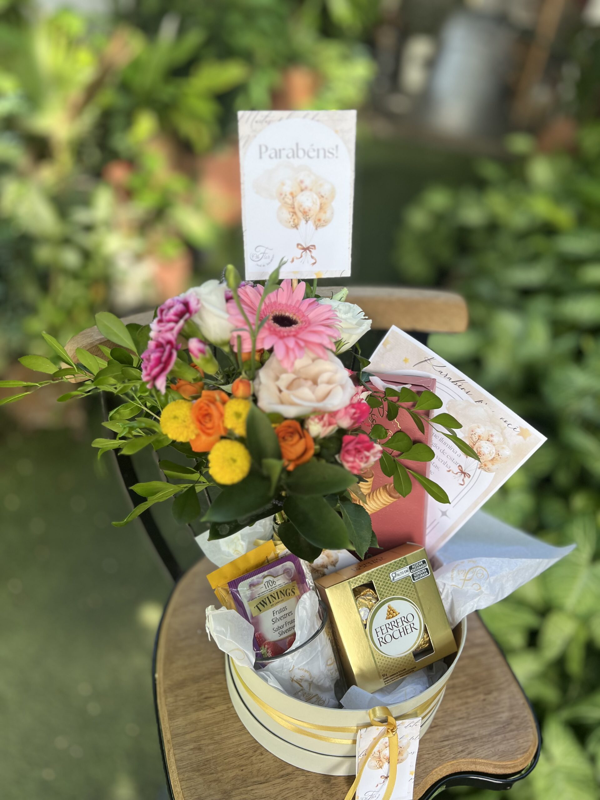 Nossa caixa de presente é mais do que um simples conjunto de produtos. É uma experiência completa, pensada para proporcionar momentos de prazer e bem-estar. Imagine-se abrindo a caixa e sentindo o aroma delicioso das flores e do café fresco. Sirva-se de uma xícara de chá ou capuccino e saboreie o waffle crocante da Cacau Show. Para finalizar,delicie-se com os chocolates Ferrero Rocher, um verdadeiro mimo para o paladar.