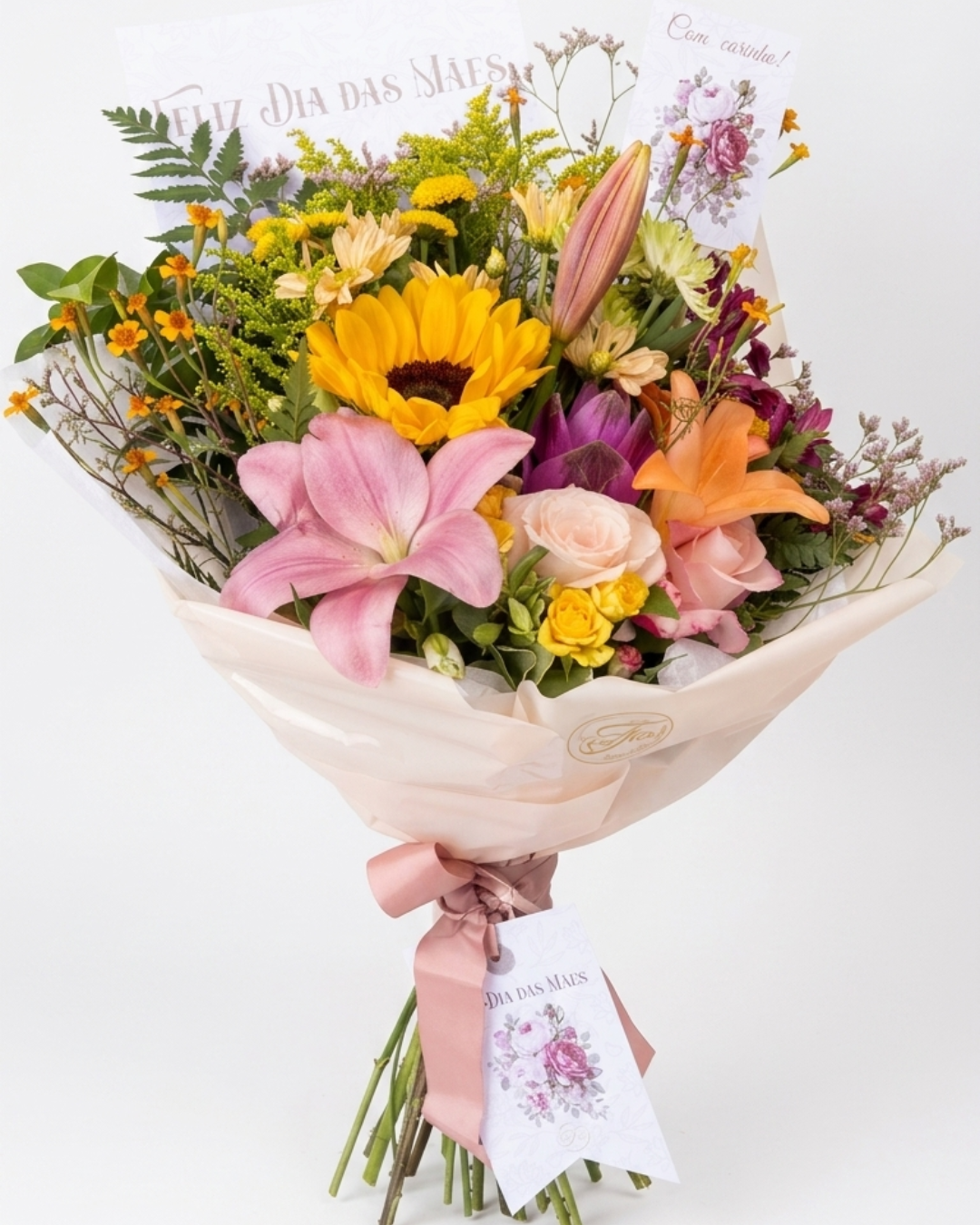 As flores são naturais? Sim, trabalhamos exclusivamente com flores naturais e frescas, selecionadas de acordo com a disponibilidade da semana para garantir a máxima beleza.