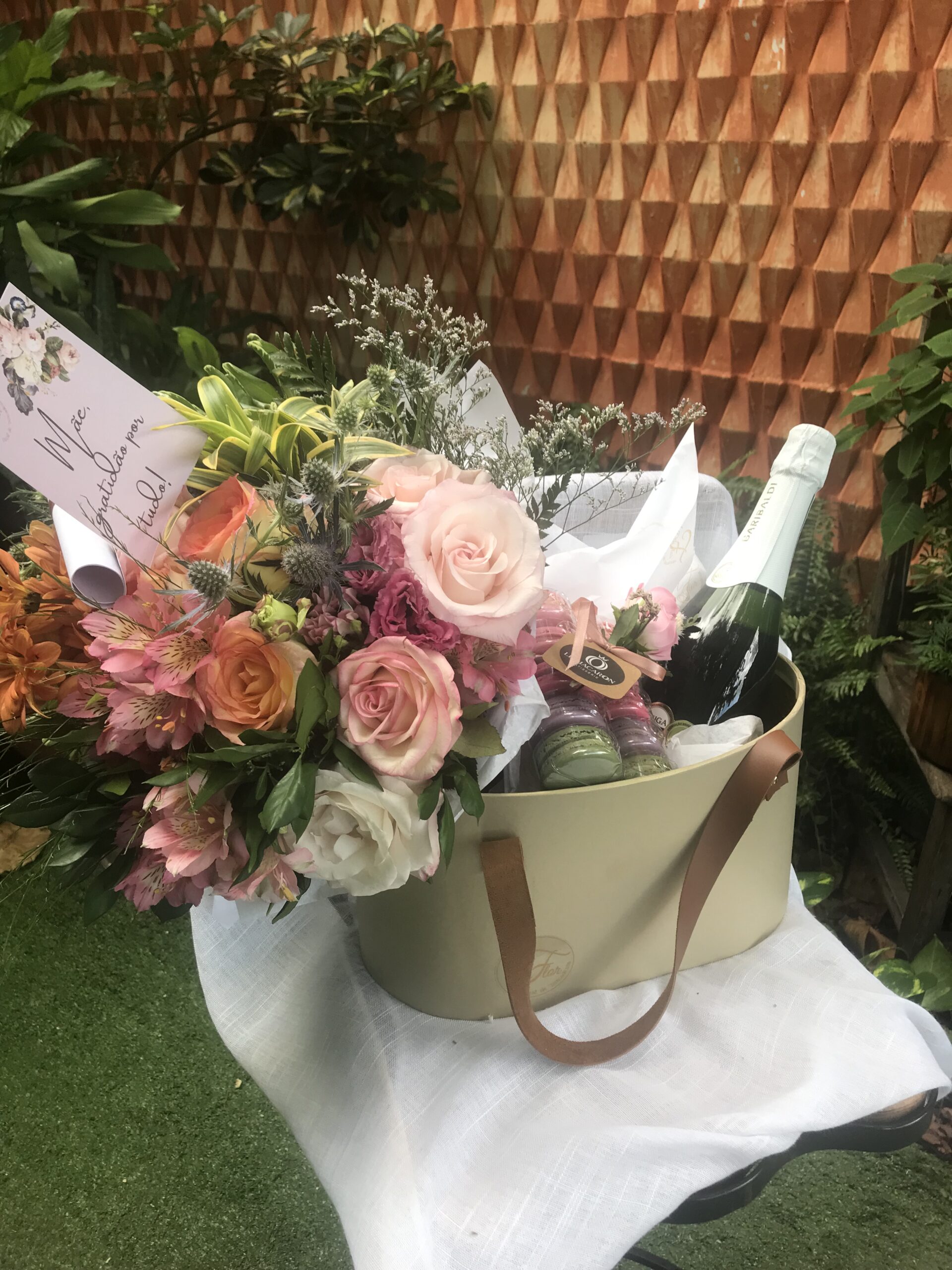 Presente com Flores, Macarons e Espumante: Uma Combinação Perfeita