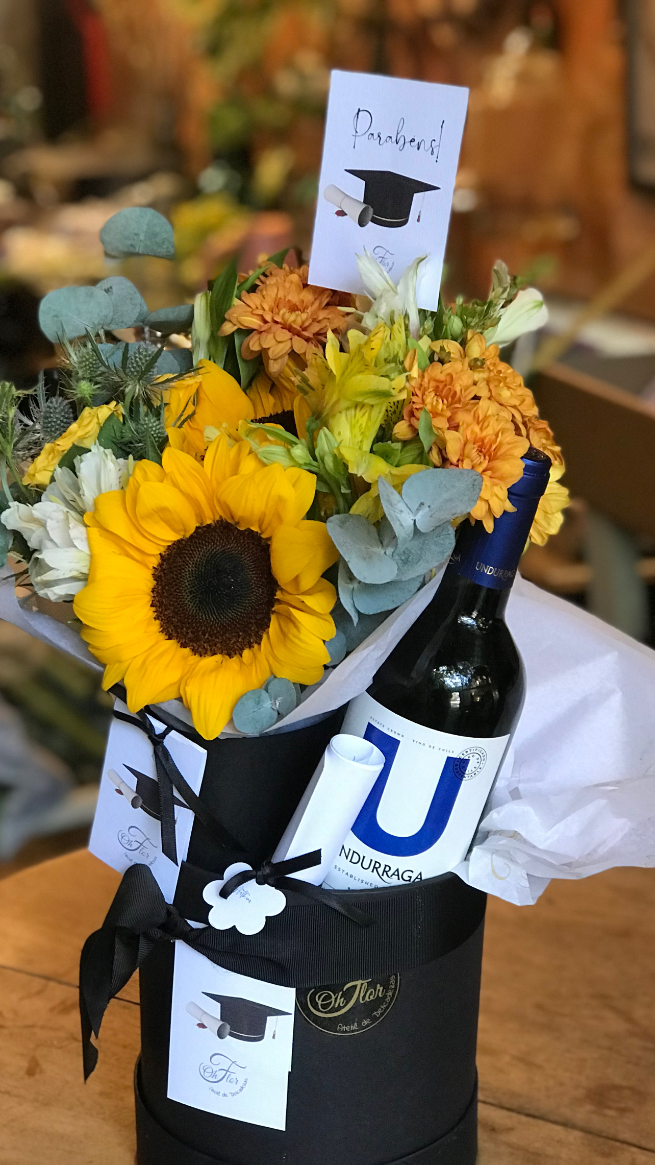 Surpreenda com o presente perfeito para ele: nosso Box exclusivo que combina a sobriedade das flores com o requinte de um bom vinho. Apresentamos um arranjo elegante em tons sóbrios e discretos, com flores selecionadas que expressam respeito e admiração.