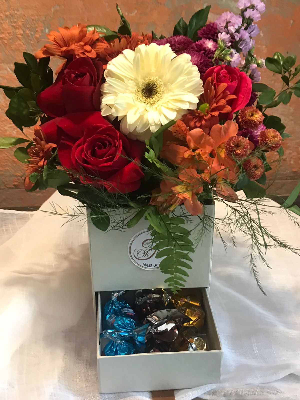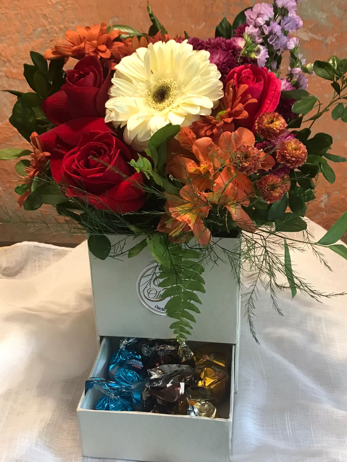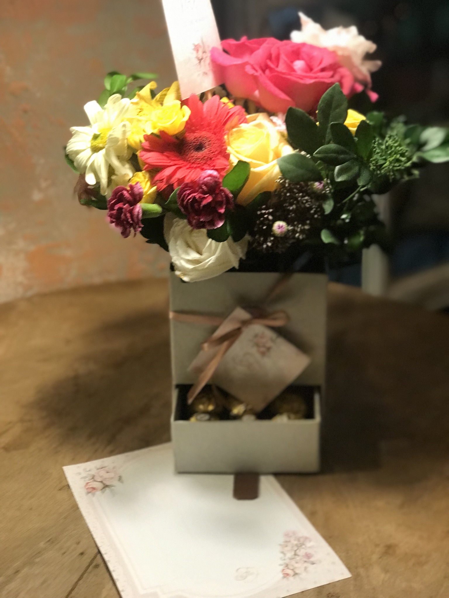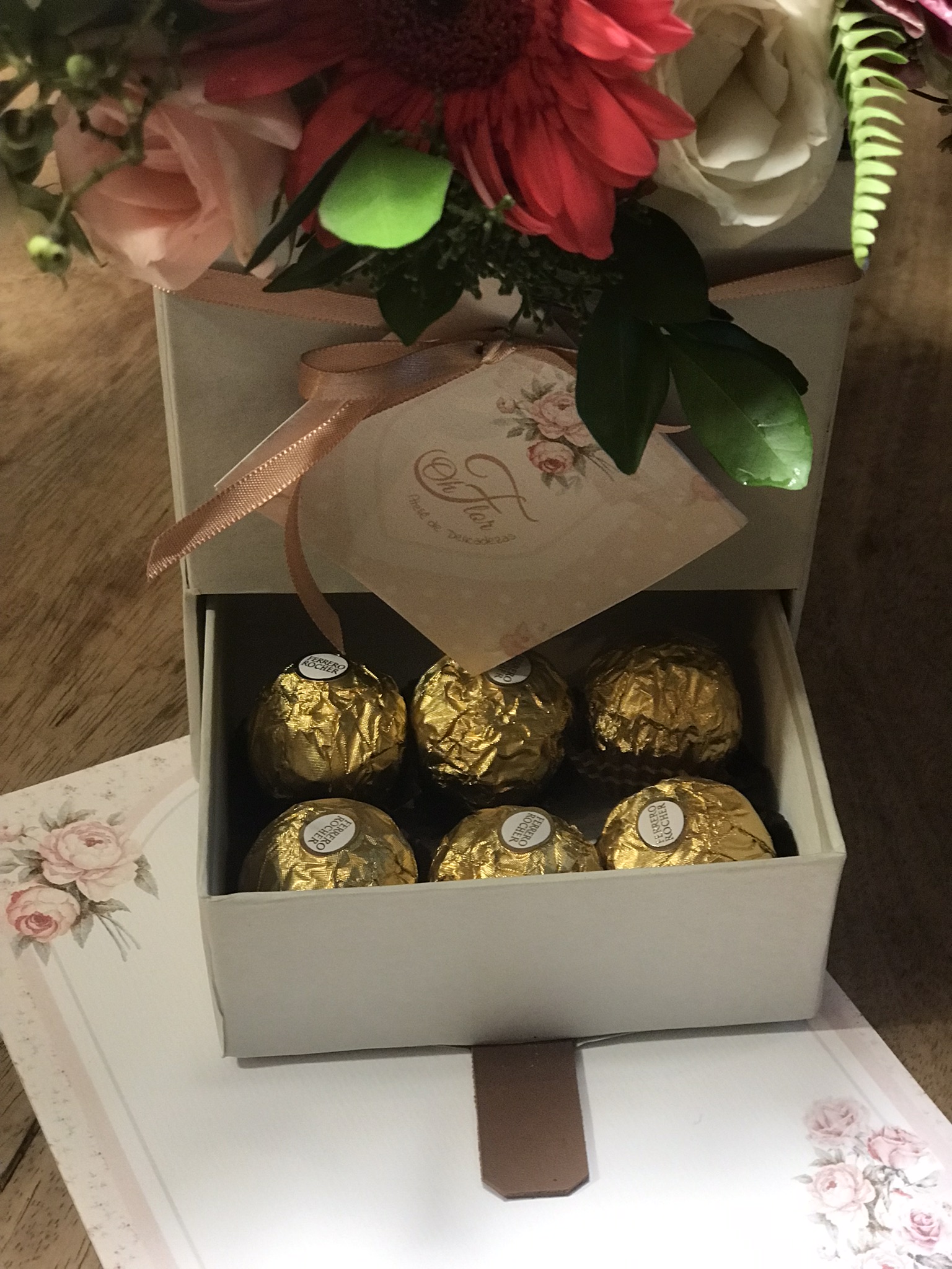 Presenteie com Amor e Sabor: Caixas de Flores com Gaveta e Bombons Ferrero!