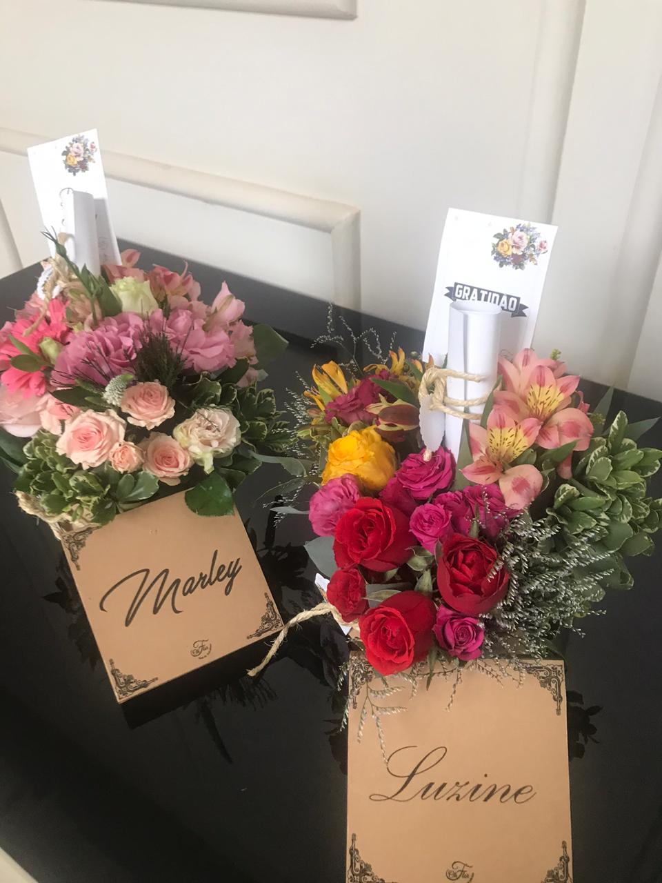 Caixa de flores personalizada, com flores frescas, vai com a tampa com a inscriçãode sua escolha, até 10 palavras e carta impressa com até 100 palavras.