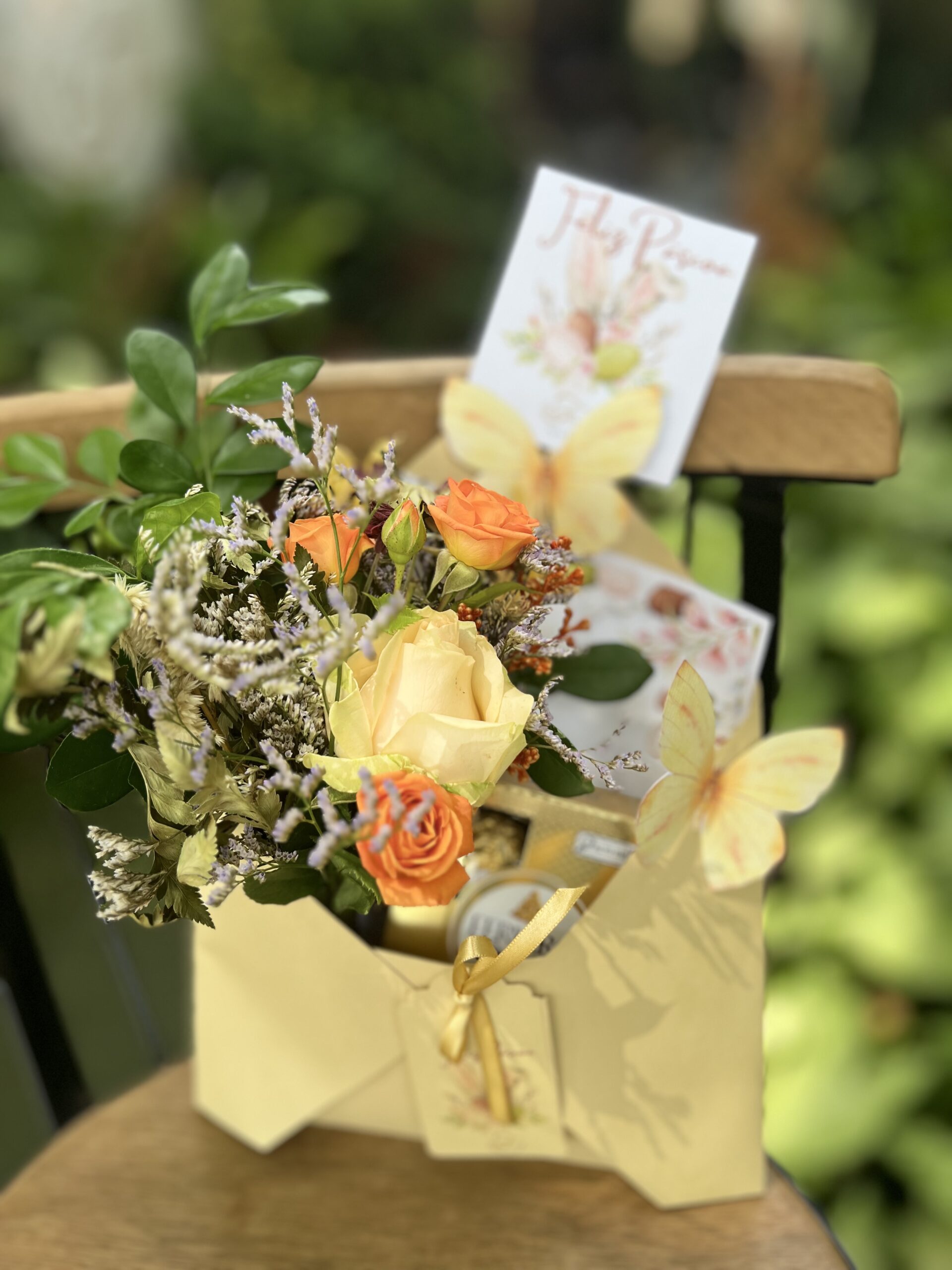 Um presente muito fofo, afetivo e gostoso: flores frescas, tira com 3 fotos, caixa Ferrero Rocher com 4 bombons e carta com 100 palavras. Envie esse carinho para qualquer ocasião, para agradar e pontuar seu carinho.