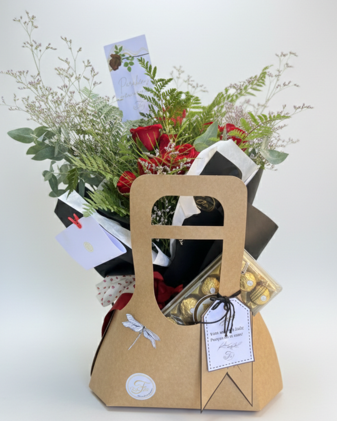 Para elevar a experiência, incluímos uma garrafa de vinho selecionado e uma caixa de bombom importado (como o clássico Ferrero Rocher 8). A doçura do chocolate premium somada à elegância do vinho torna a Cesta Orquídea Presente o presente ideal para aniversários de casamento, conquistas profissionais ou grandes declarações de amor em Goiânia.