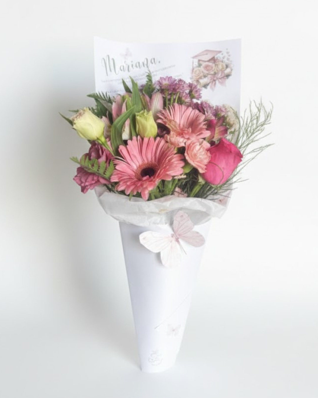 Diferente de qualquer outro arranjo, o Cone Bailarina utiliza uma estrutura em papel cartão de alta resistência e acabamento premium. Essa escolha de material não é por acaso: o papel cartão oferece a sustentação necessária para que as flores mantenham sua postura e elegância durante o transporte e a exibição.