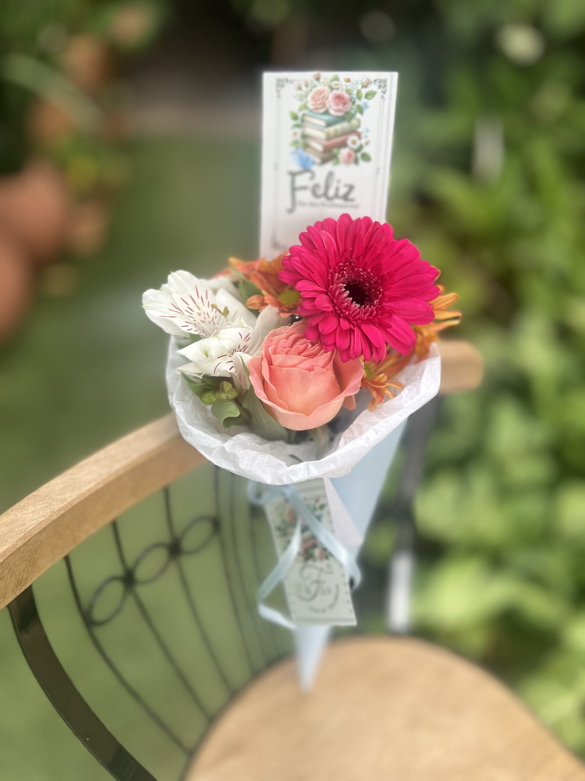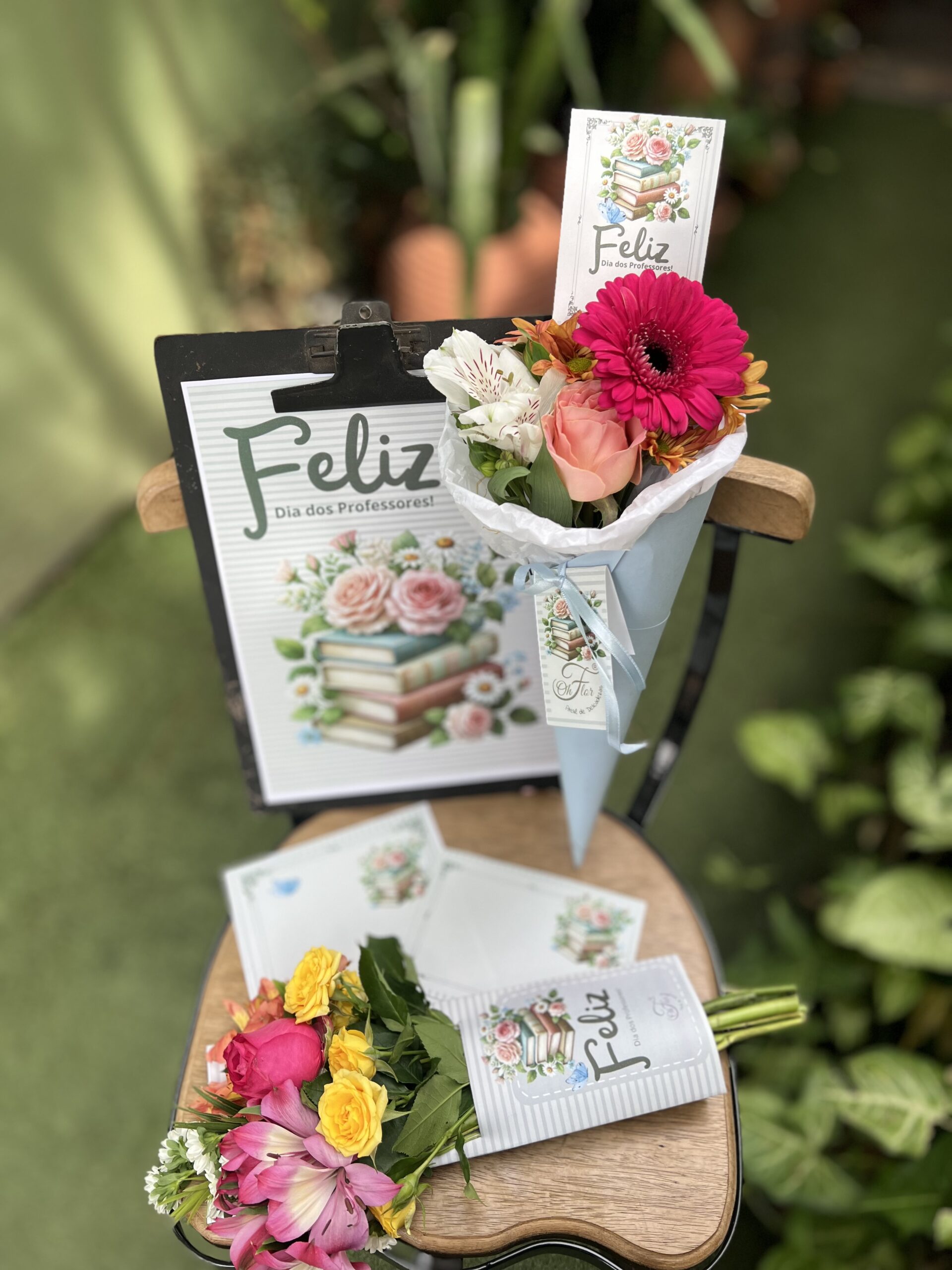 Arranjo de flores frescas da semana para o Dia dos Professores com entrega em Goiânia. Cone ou cartão.