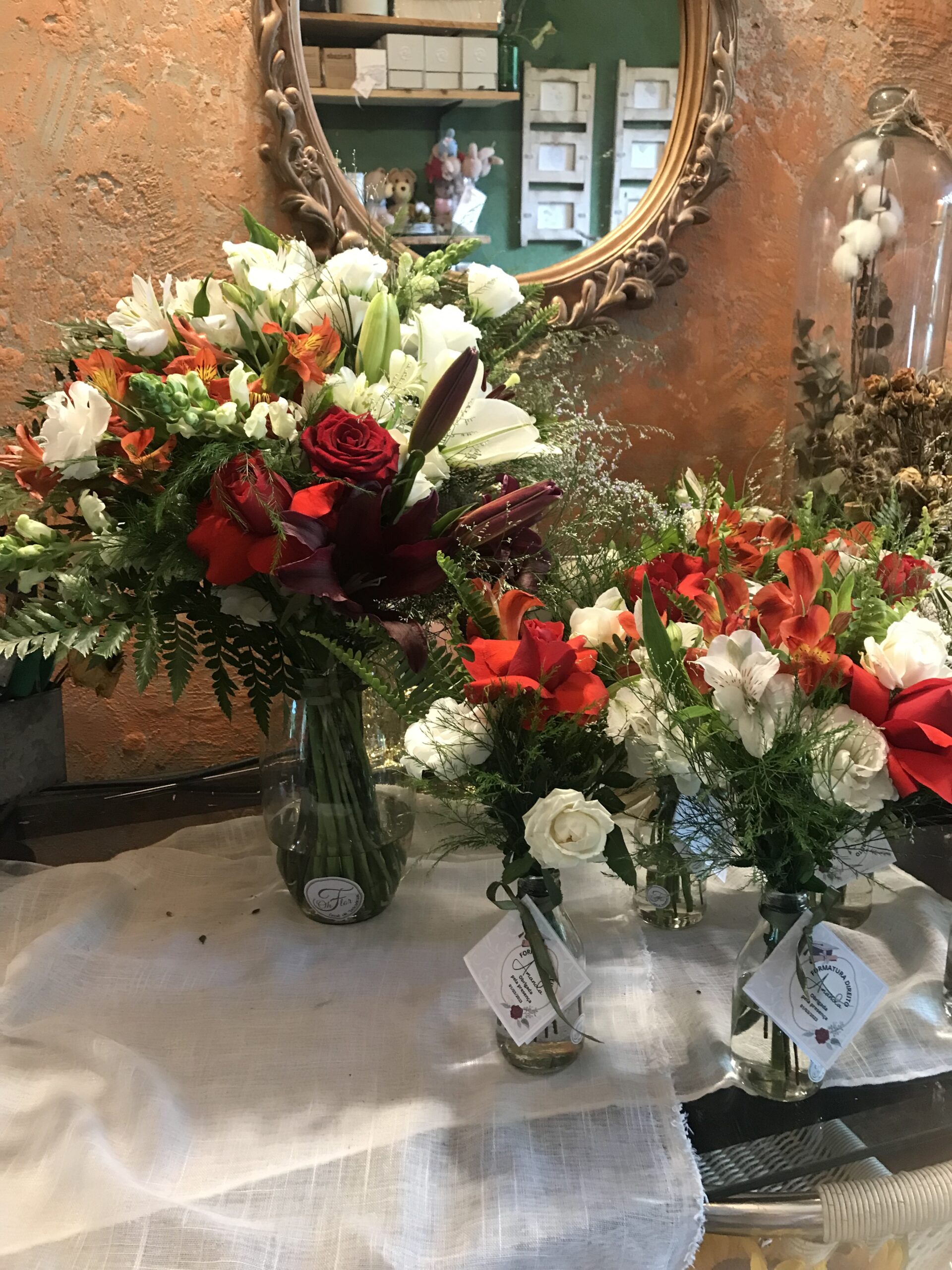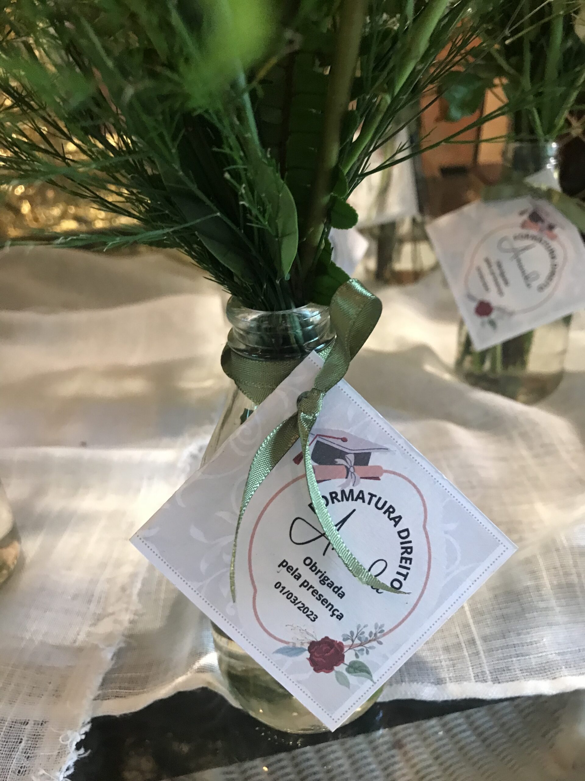 - Em cortesia, os arranjos vão com papelaria exclusiva de seu evento, com a mensagem a sua escolha, com até 8 palavras.