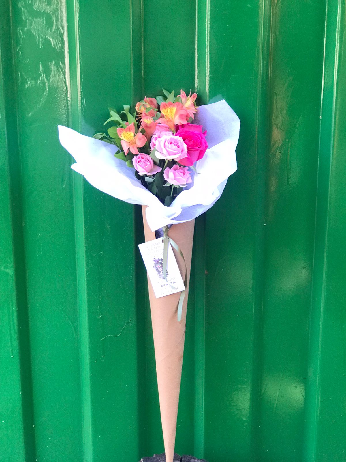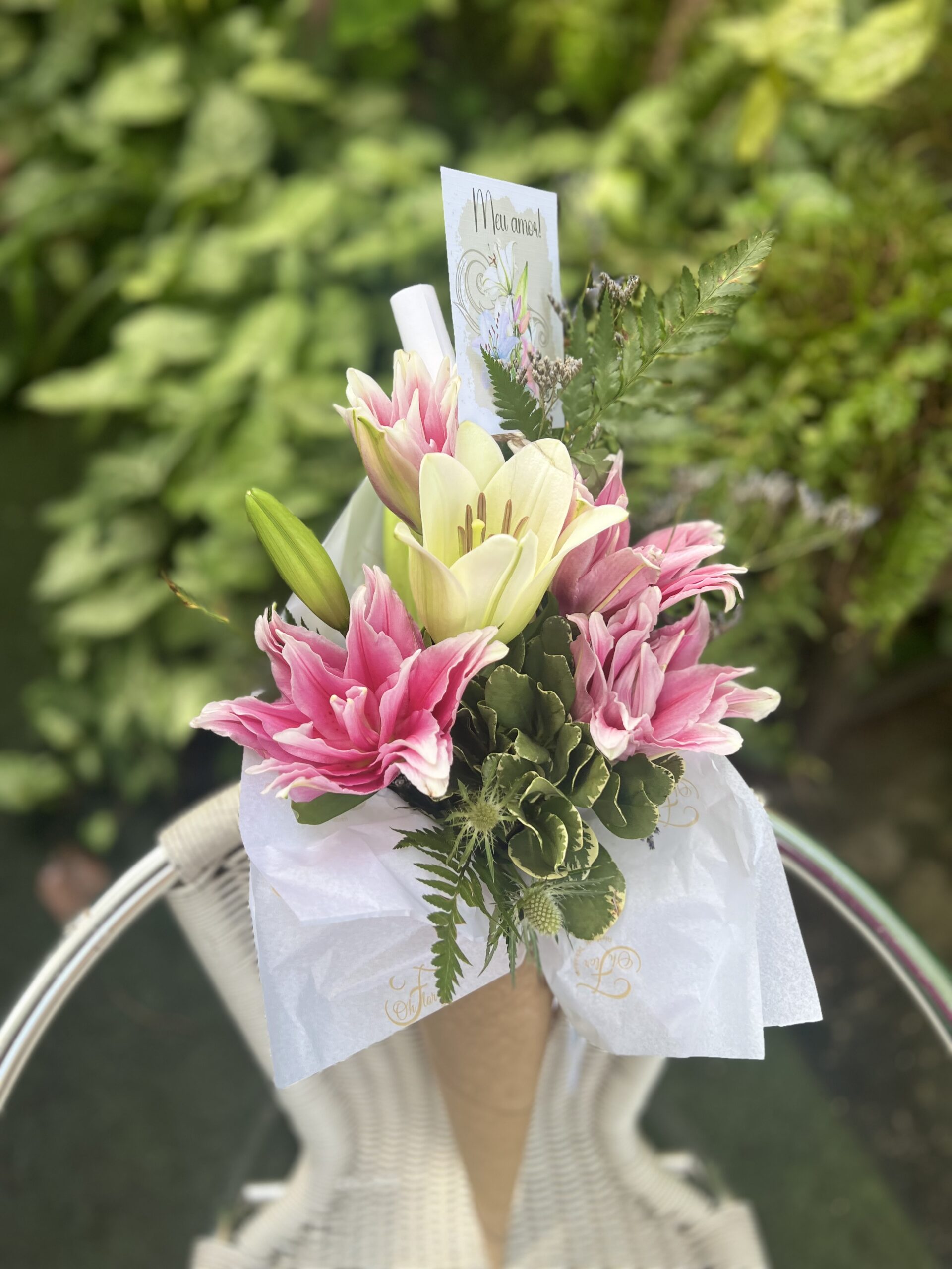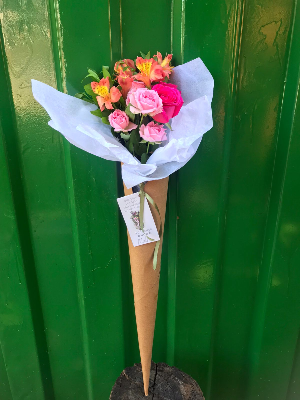Maxi Cone com flores frescas e cone em papel kraft de 60 cm. Presente lindo para declarar seu apreço ou decorar sua casa ou corporativo, em ocasiões especiais.