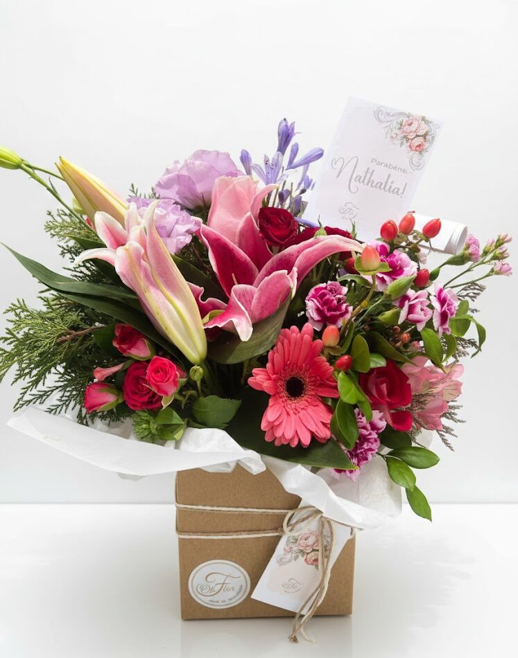 Um serviço exclusivo do nosso ateliê em Goiânia é a possibilidade de criar um kit personalizado. A Orquídea na Caixa pode ser o elemento central de um presente maior. Você pode enviar ao nosso ateliê produtos comprados por você — como um espumante, uma joia, chocolates finos ou cosméticos — e nossa equipe fará a composição artística dentro da mesma identidade visual.