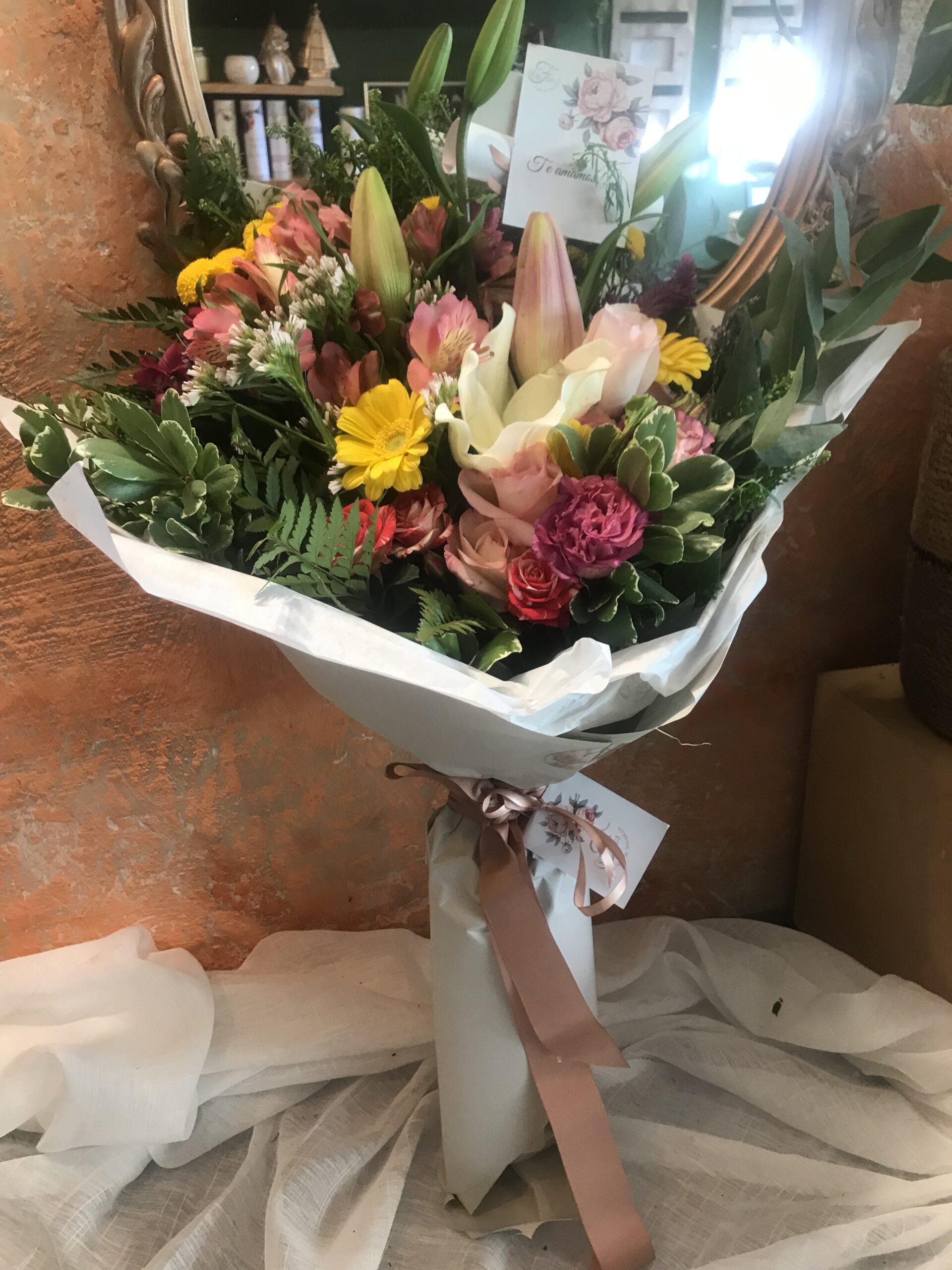 Este ramalhete reúne o frescor das flores da semana em um arranjo único e vibrante, inspirado na alma boêmia. Cada flor é cuidadosamente selecionada para criar uma explosão de cores e texturas, traduzindo a beleza autêntica da natureza em um presente inesquecível.